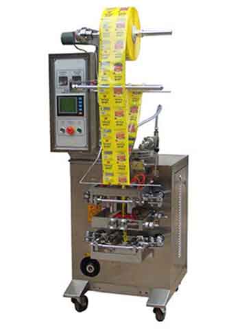 氣動四邊封液體自動包裝機適合各種液體包裝如洗潔精、洗發水、牙膏、調味品、蜂蜜或油類等。光電跟蹤及無極調速于一體