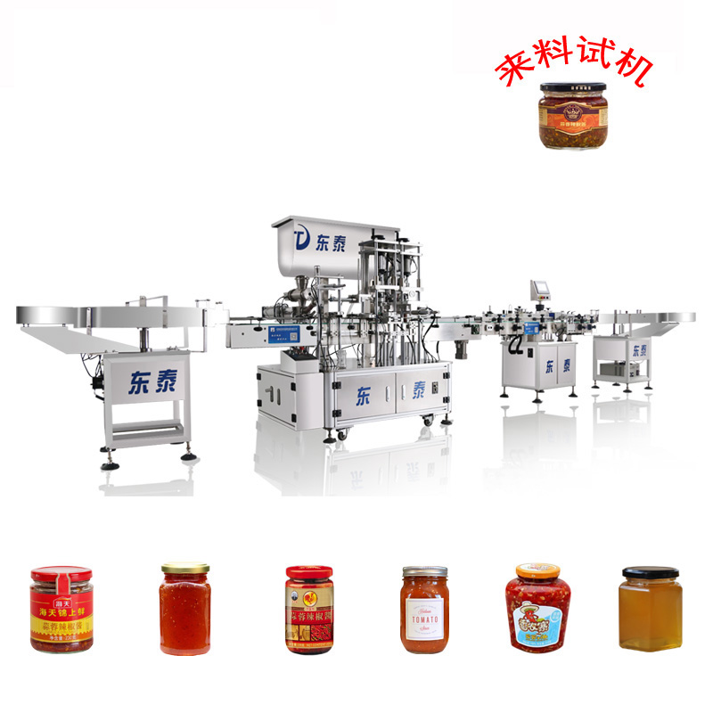 3、該灌裝機主要針對食品行業的醬類分裝設計生產,特別適用于調味品中帶顆粒并且濃度較大的辣椒醬、豆瓣醬、花生醬、芝麻醬、果醬、牛油火鍋底料、紅油火鍋底料等物質的粘稠醬類的灌裝。