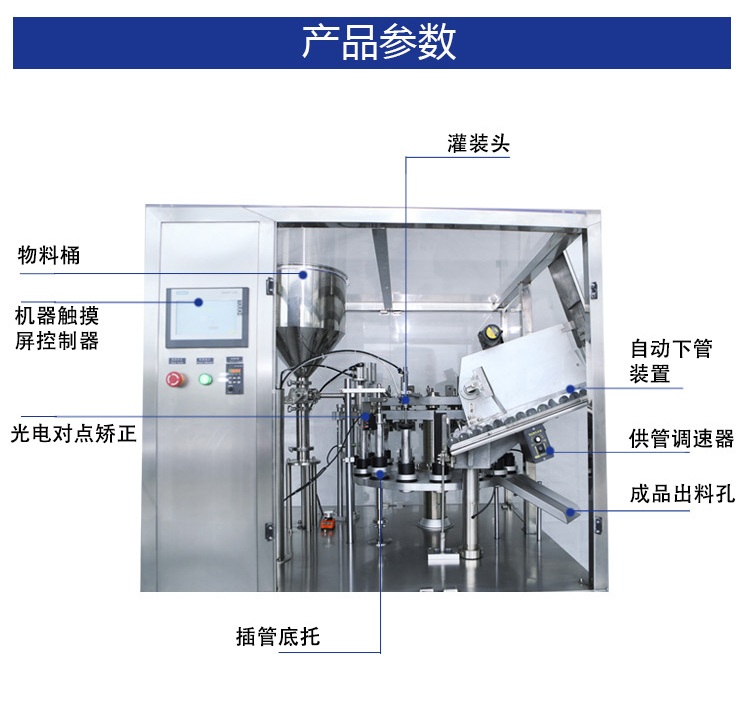 順利準確地注入軟管中,并完成管內(nèi)熱風(fēng)加熱、封尾和打批號、生產(chǎn)日期等。